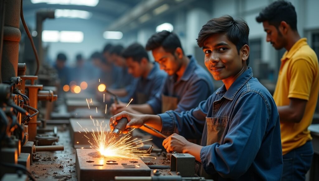 Tailored training in trades like tailoring, carpentry, welding, and electrical work to meet local employment and self-employment opportunities.