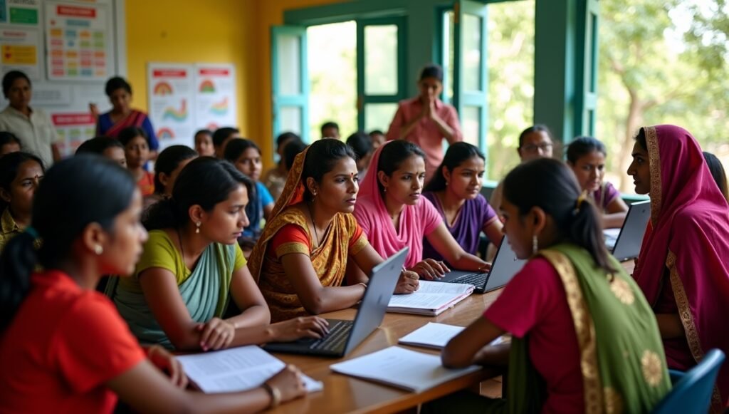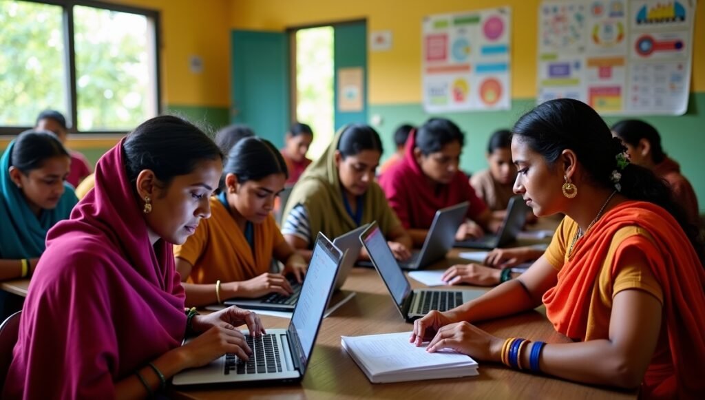 Computer and internet literacy for youth and women, enabling access to information, jobs, and e-governance services.
